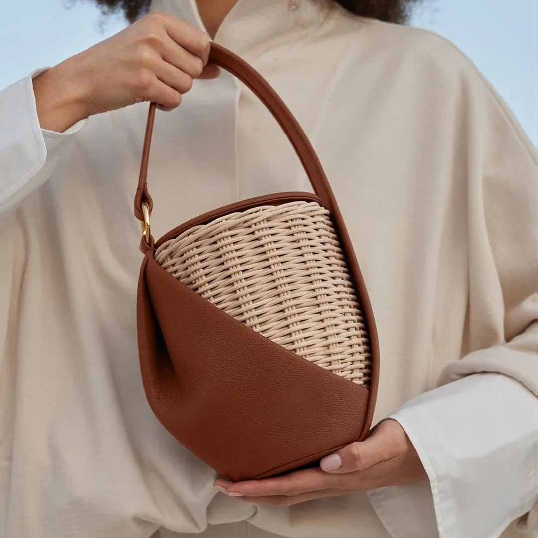 不論是草編還是針織水桶包,圓潤可愛的水桶包形都是永不過時的經典設計。設計亮點可聚焦在環繞包形的點綴設計上,將牛皮材質等編織使用,質感升級,抽繩設計則貼心實用。