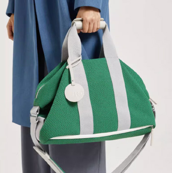 旅行帆布包袋是使用再生環保面料制作,由海洋塑料回收制作的兩種不同紗線斜紋編織而成。線材表面添加有特氟龍防水涂層,水滴不滲,油污不進,雨天也能安心出行。