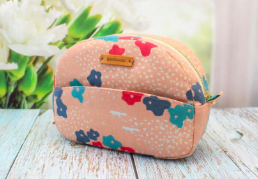 將化妝包表布布條與拉鏈、里布車縫到一起