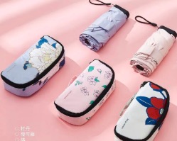 新款化妝包系列采用業內最先進的6骨6折扁形傘架,進一步減小收納后體積,卻絲毫不影響傘下面積。