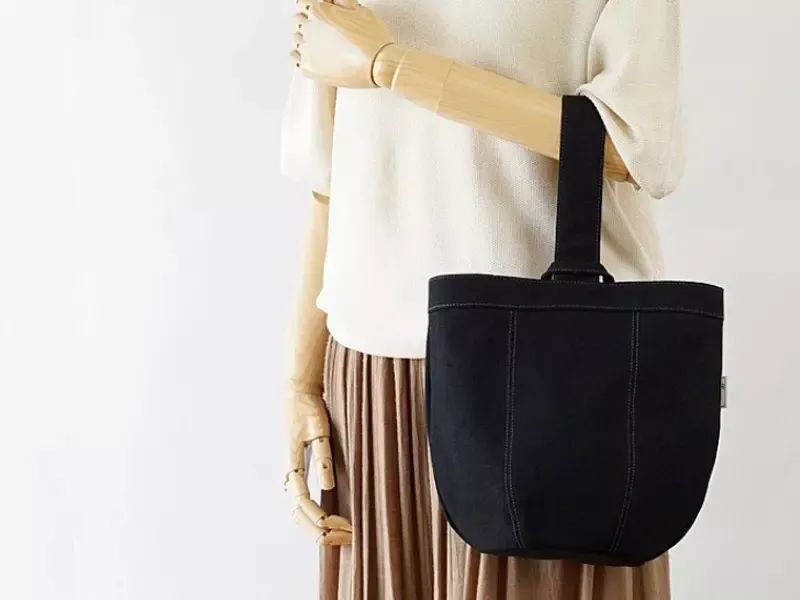 這款圓滾滾的蘋果型黑色帆布包不僅外觀可愛,設計也很有巧思,提帶處設計了一個小環,只要把提帶穿過去,就能縮緊包口,讓人不會輕易摸走里面的東西,實在是讓人很佩服的設計!