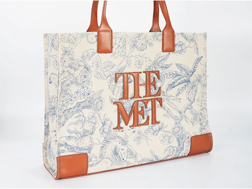 帆布包 包身的印花圖案來自大都會藝術(shù)博物館的藏品布料,是一種流行于18~19世紀歐洲的中式風格。