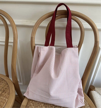 配色很別致!看著高級,尤其是這個樹莓粉的配色,甜甜的但不抓馬。而且走線挺緊實的,提重物也撐得住。拿來當個小野餐包或者是帶飯的袋子都很不錯。